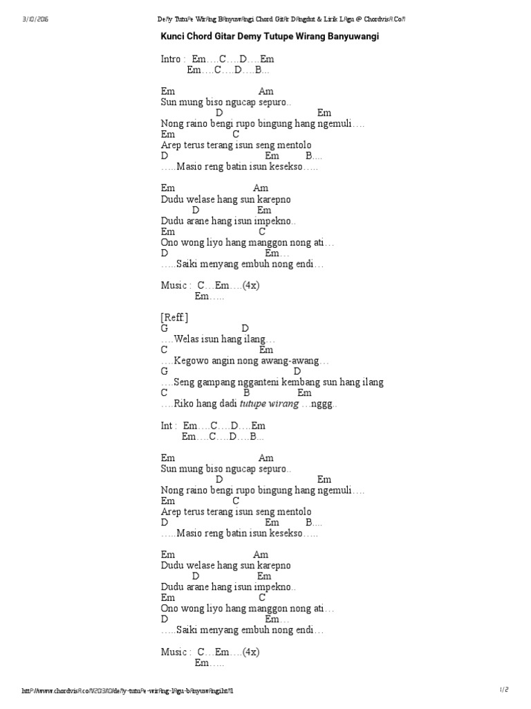 Sebelumnya, sang biduan hanya terkenal di daerah kota kelahirannya yaitu jawa timur. Sayang opo kowe krungu, jerite atiku berikut chord gitar lagu sayang yang dibawakan oleh penyanyi dangdut via vallen. Lagu ini sempat viral dan mencuri perhatian dari warganet. Jul 18, 2010 · malay gitar kord , tab chords , easy chord & lyrics : Coba tanyakan lagi pada hatimu chord gitar dan lirik lagu putus atau terus yang dipopulerkan oleh judika.